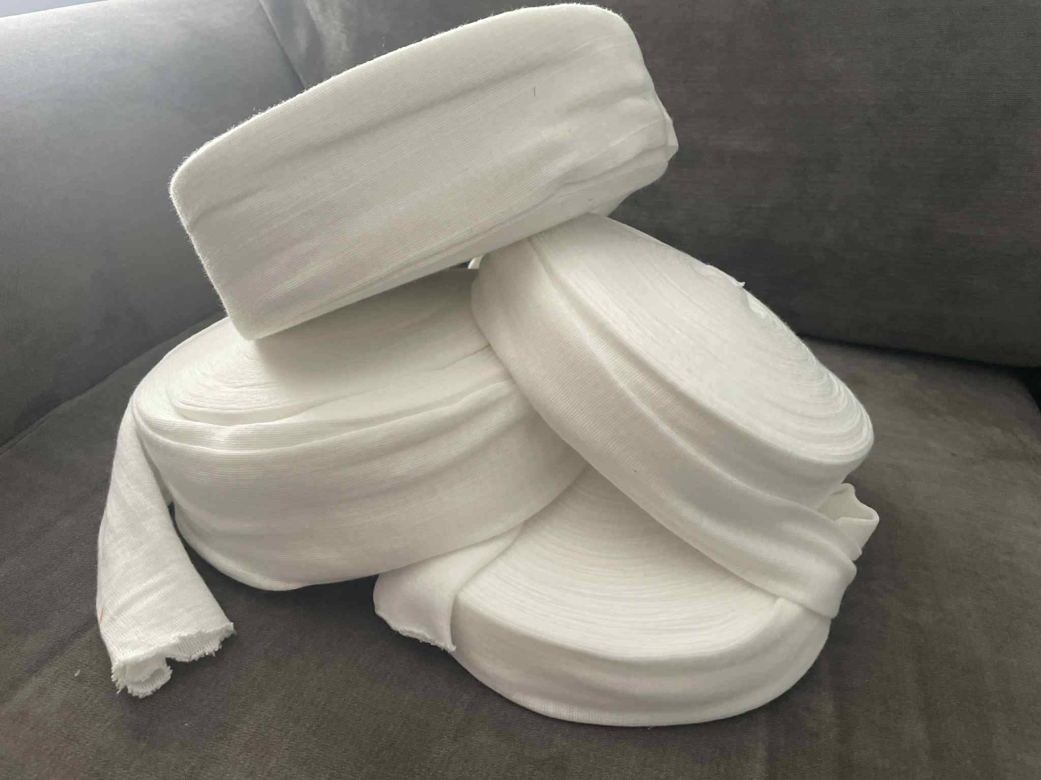 We get asked all the time, “What do you NEED?” We need three different things all the time. We need white ribbon, white flannel and medical grade synthetic stockinette.